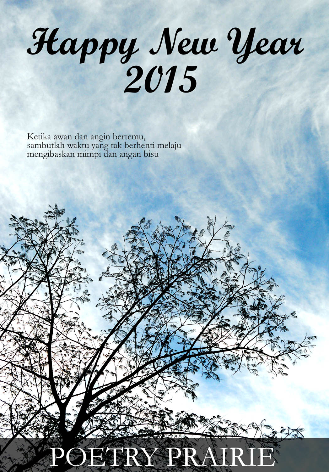 Happy New Year poetryprairieDecember 31, 2014Poetry Post navigation PreviousNext Share this: Click to share on X (Opens in new window) X Click to share on Facebook (Opens in new window) Facebook Click to email a link to a friend (Opens in new window) Email Like Loading... Related