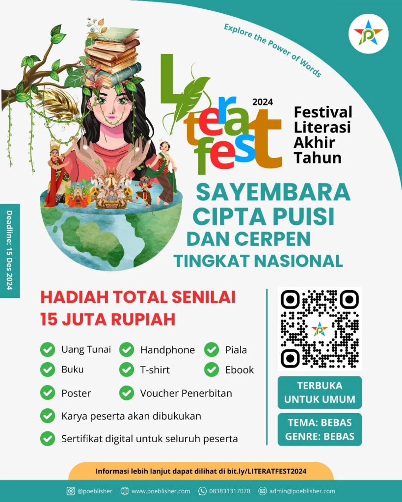 Literat Fest 2024 hadir sebagai pagelaran aksara yang memadukan kreativitas dan kejeniusan dalam bingkai literasi. Di tengah euforia peradaban yang semakin pragmatis, festival ini menjadi arena sublimasi gagasan, tempat di mana kata-kata dipahat menjadi mahakarya, dan puisi serta cerpen menjadi medium ekspresi yang menggemakan suara nurani. Literat Fest bukan sekadar kompetisi, tetapi sebuah simfoni intelektual yang memuliakan literasi sebagai fondasi abadi peradaban, merajut imajinasi dalam keindahan aksara yang penuh makna.