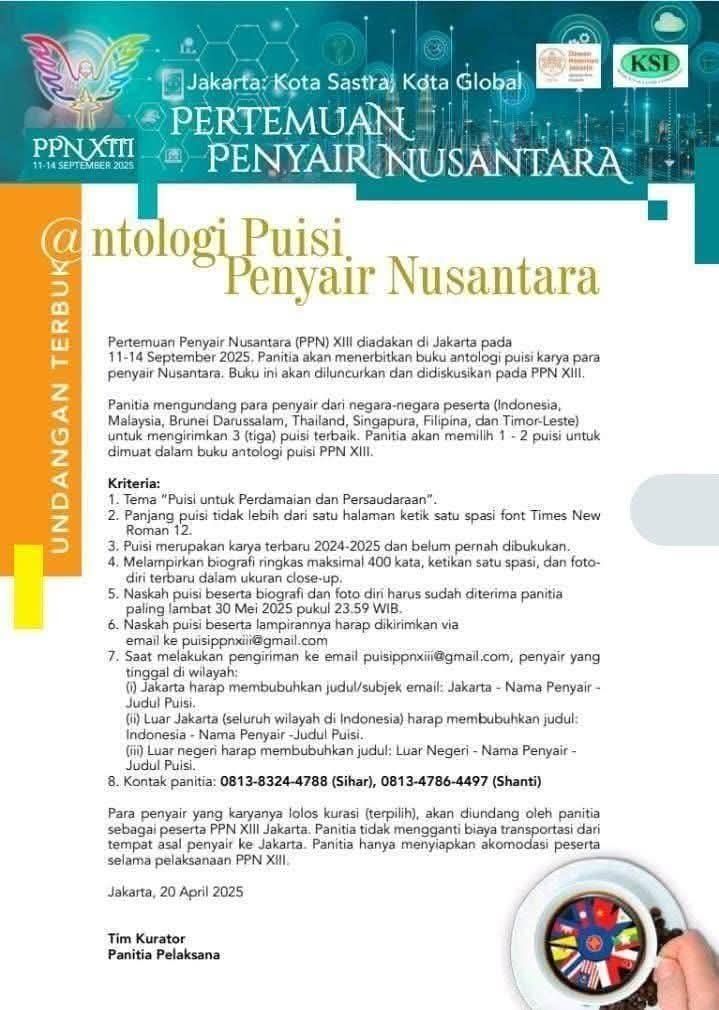 6. Naskah puisi beserta lampirannya harap dikirimkan via email ke puisippnxiii@gmail.com