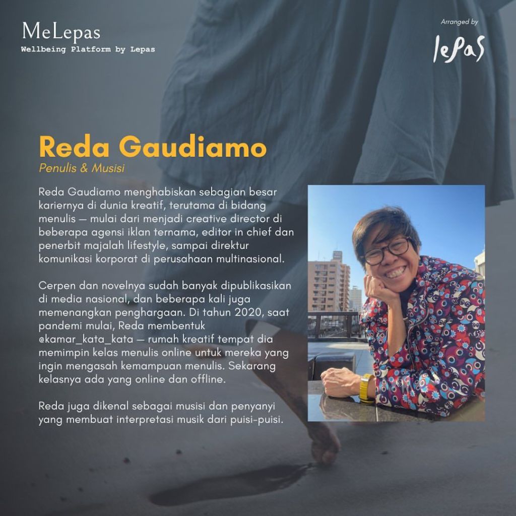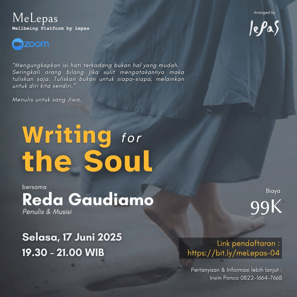 Melalui workshop ini, Mba @reda.gaudiamo akan mengajak teman-teman untuk lepas bebas menuliskan apa saja yang berisik terlintas, menulis dengan ringan, bercerita tanpa rencana, mengeluarkan apa yang perlu disuarakan, bahkan mungkin saja menyuratkan suara yang paling sunyi di dalam.