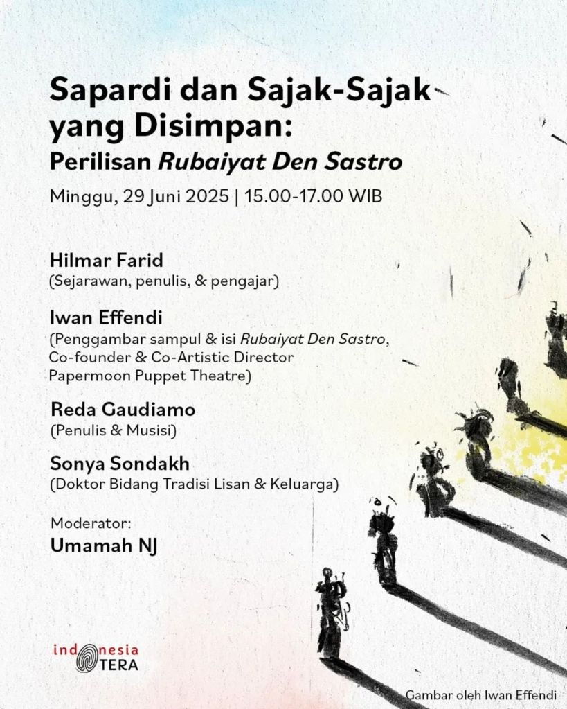 Rubaiyat Den Sastro dan Hujan Puisi di Ujung Juni adalah sebuah pertemuan kecil untuk saling tukar cerita. Tentang Sapardi dan puisi-puisi yang membuatmu merasa, yang mungkin juga membuatmu berkarya.