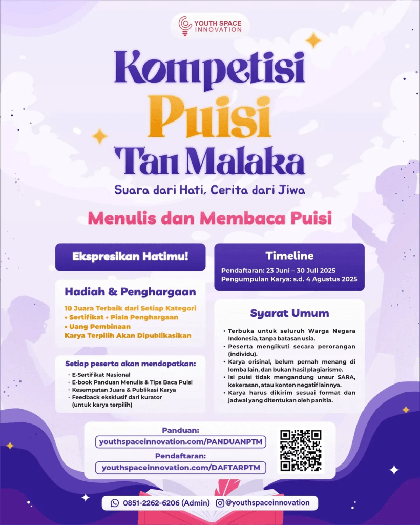 LOMBA PUISI NASIONAL TAN MALAKA BY YOUTHSPACE INNOVATION TELAH DIBUKA!