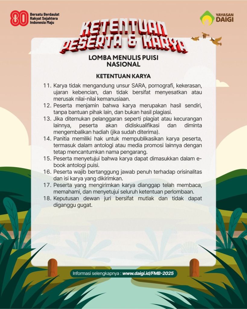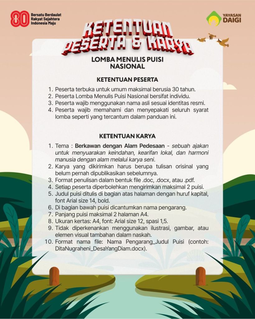 #FestivalMerdekaBerkarya2025 #YayasanDAIGI #LombaPuisiNasional #PuisiPedesaan #KaryaUntukBangsa #17anBerkarya
