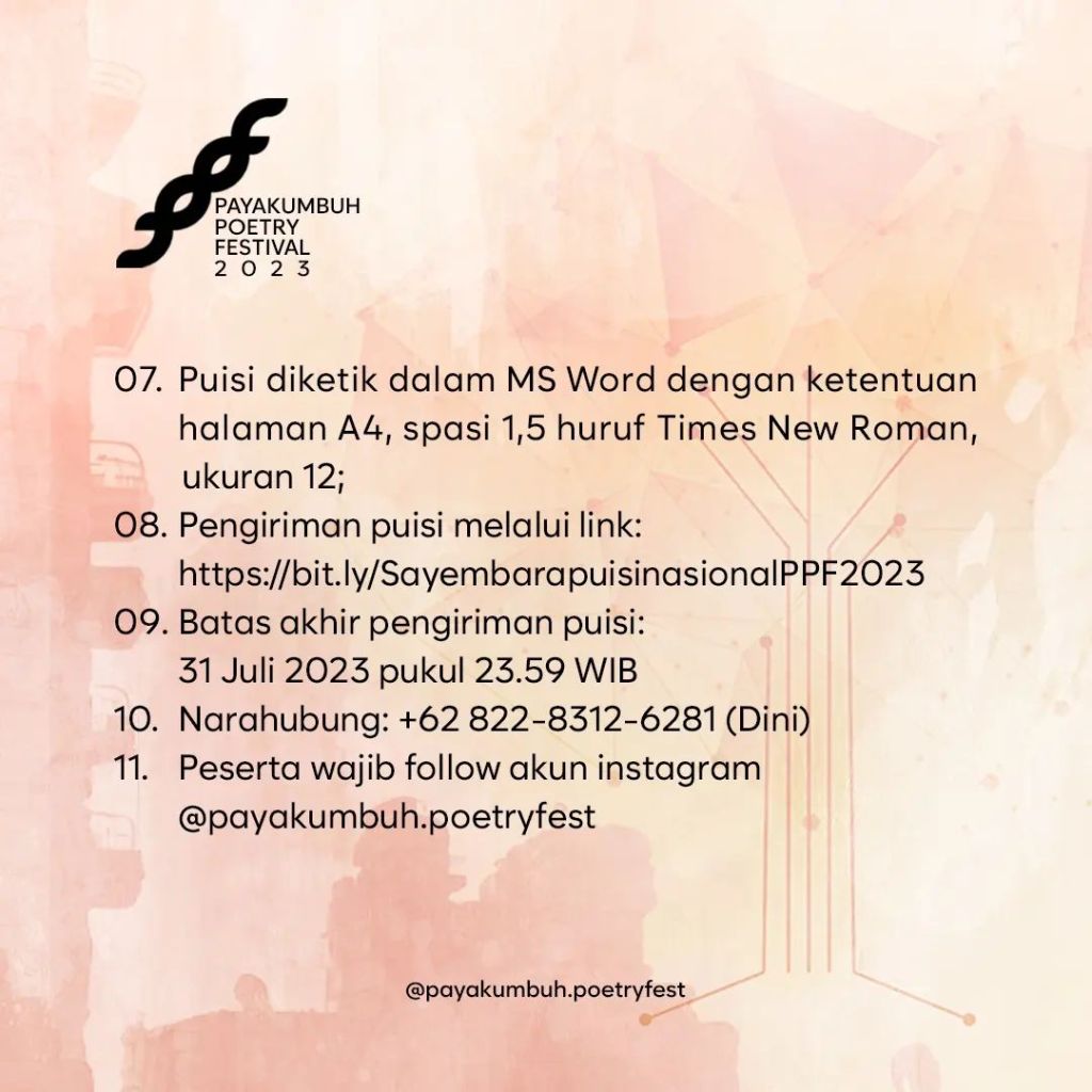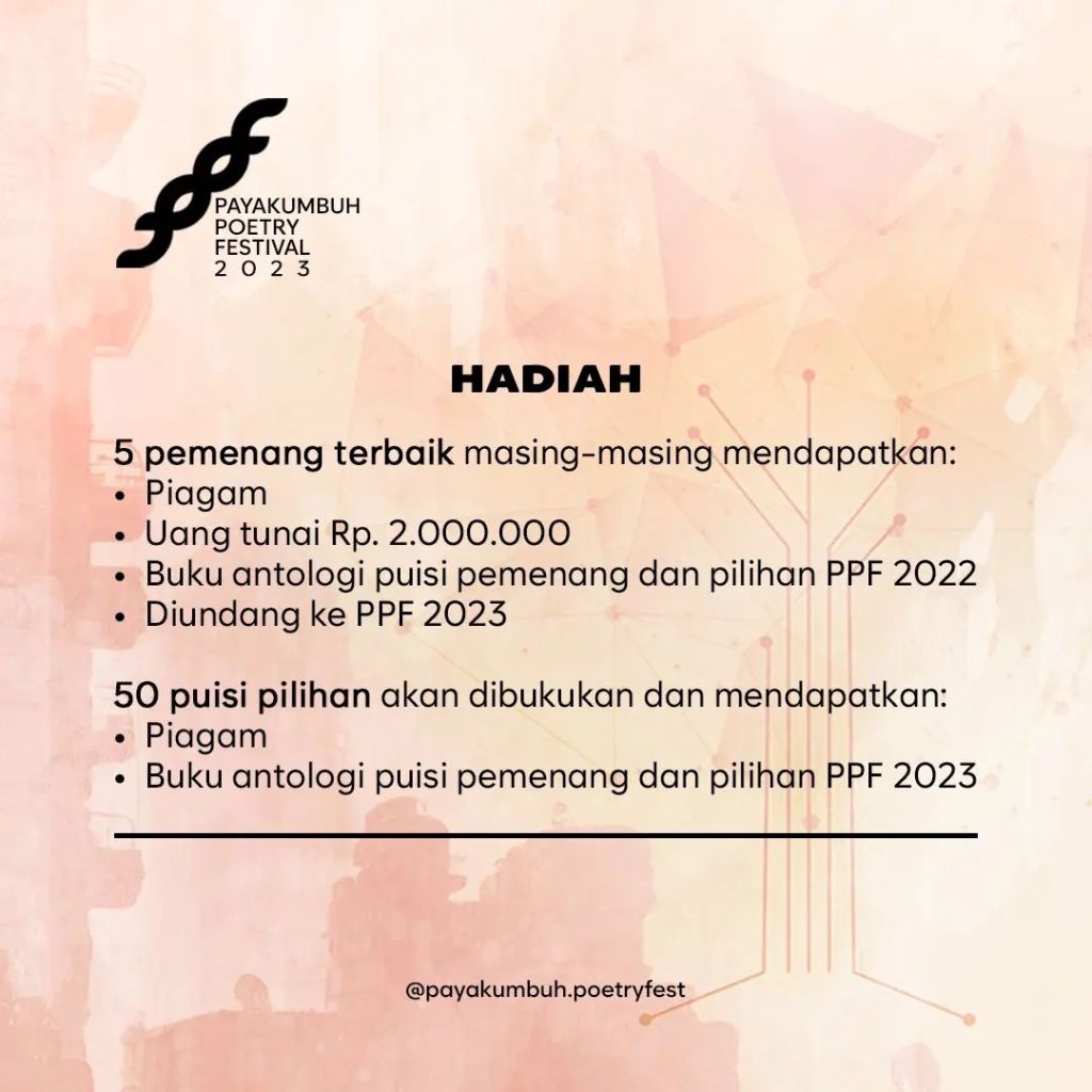 Sayembara Penulisan Puisi: Distopia DL: 31 Juli 2023 Back Share this: Click to share on X (Opens in new window) X Click to share on Facebook (Opens in new window) Facebook Click to email a link to a friend (Opens in new window) Email Like Loading...